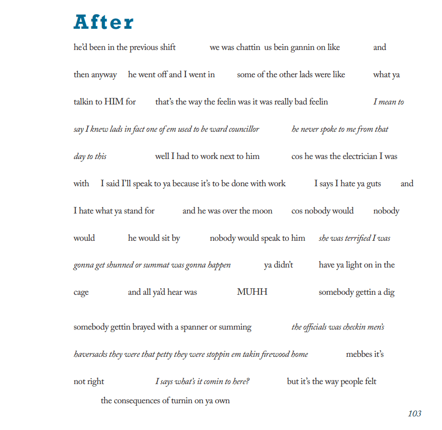 I worked with the audio from these interviews to write a series of dialect biographies of each man, along with a collection of eight verbatim poems. The biographies and poems were published by Redhills CIO alongside Andy Martin’s tintype portrait photography in a book entitled Coal Face Volume 1: Washington. The book was released in line with an exhibition at Washington F-Pit Museum.